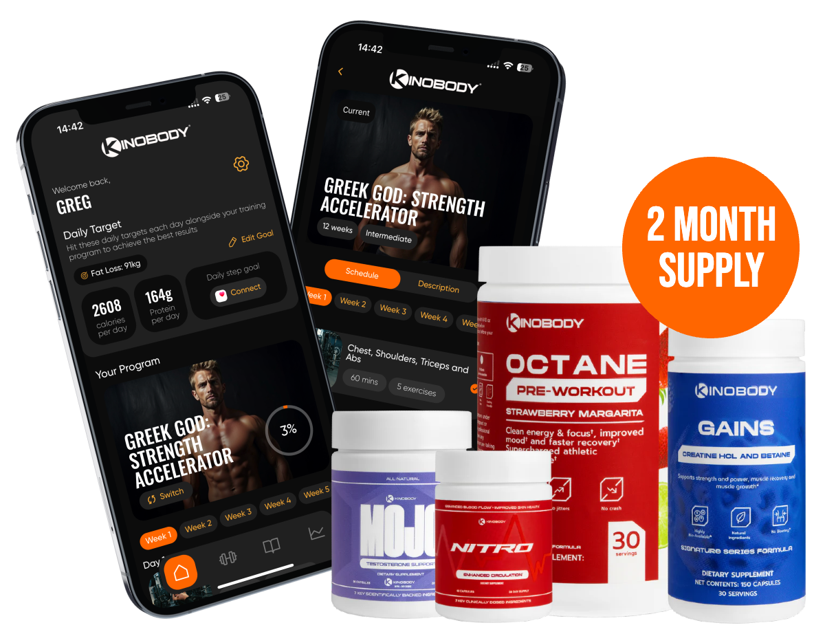 The Hero Stack + KinoBody App gives you everything you need to look and feel like a Movie Star — in 4 months.